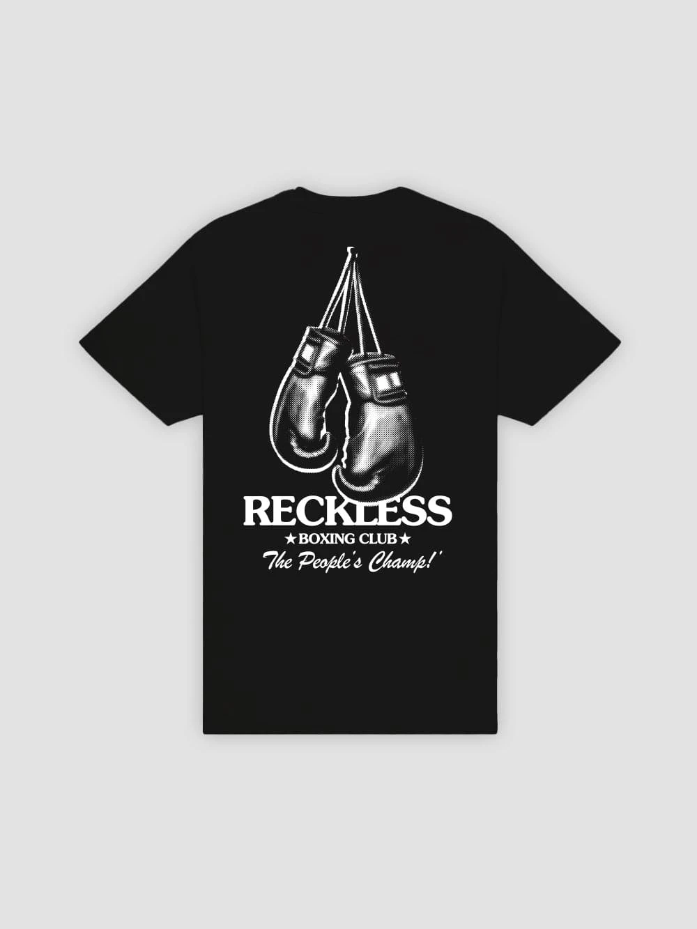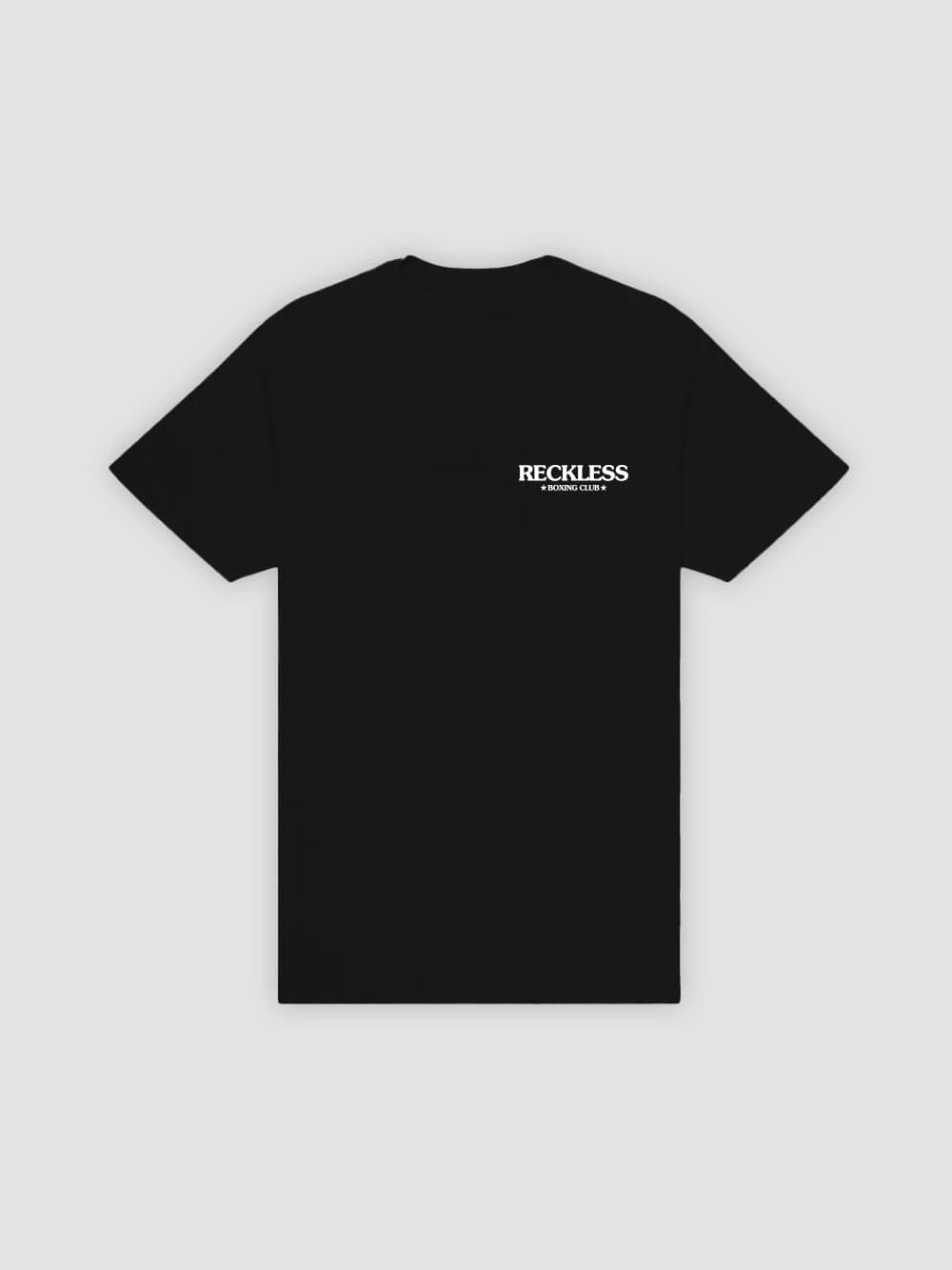 - The Boxing Club Tee is short sleeved, cut to a standard fit, and topped with a rib-knit crew neck. Large graphic on back, small graphic on front.