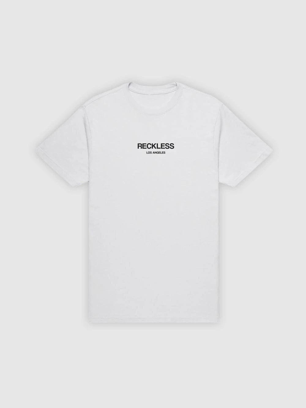 - Our Classic Tee in White features our Reckless logo across the front in black text. Cotton tee also features rib-knit banding at the crewneck, providing a comfortable fit for all.