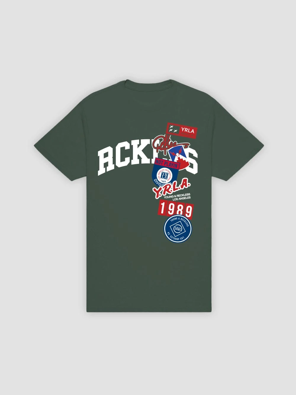 - Stand out in our new Vintage wash Descent Tee in Pine. Short sleeve, cut to a standard fit, and topped with a rib-knit crew neck. Tee is finished with a large RCKLSS graphic on the front, and “sticker” graphics. Pair with one of our signature jeans to complete the look!