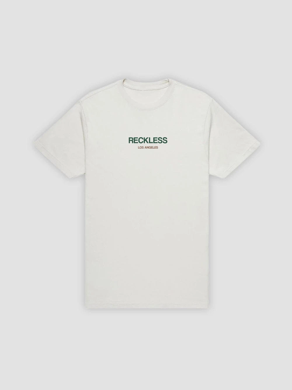 - Introducing our Essence Tee in Natural. Tee features our RECKLESS logo on the front and large graphic across the back. Tee is short sleeve, cut to a standard fit, and is topped with a rib-knit crew neck.