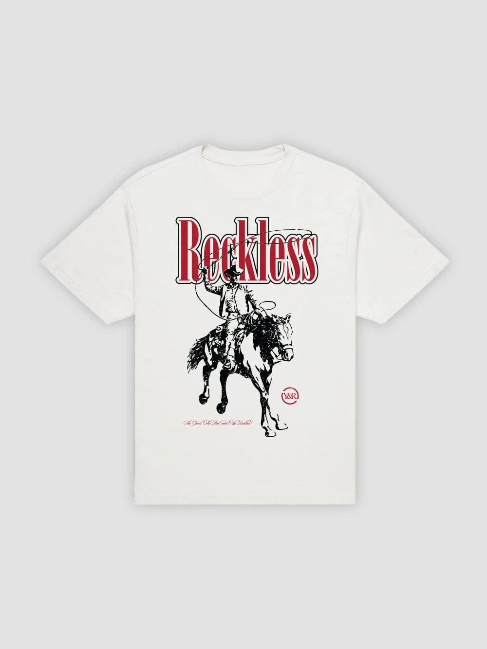 - The Lasso Tee is short sleeved, cut to a standard fit, and topped with a rib-knit crew neck. Large graphic on back, small graphic on front.