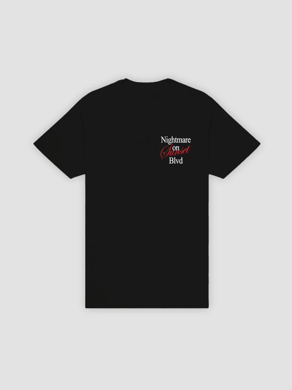 - Tee is short sleeved, cut to a standard fit, and topped with a rib-knit crew neck.