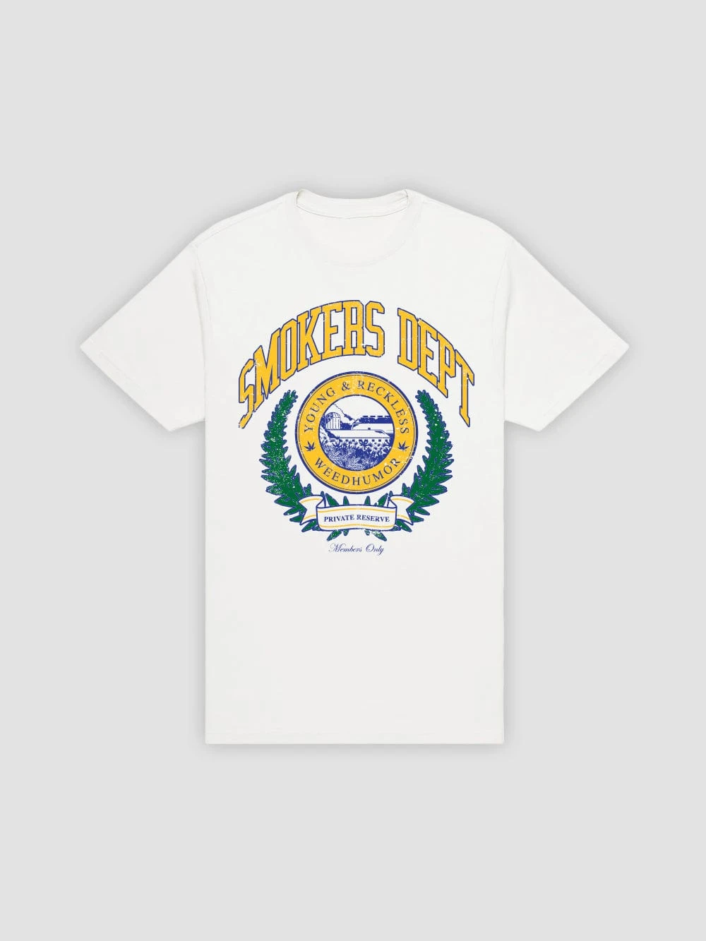 Our Smokers Dept. Tee features our Smokers Crest graphic on the front distressed to perfection. Tee is short sleeve, cut to a standard fit, and is topped with a rib-knit crew neck.